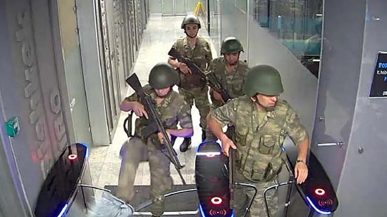 TRT Ulus yerleşkesi baskınını gerçekleştiren Harp Akademileri Komutanlığı görevlisi şüpheliler Binbaşı Yüksel Demir ile Yüzbaşılar Melih Can, Hasan Baş, Serkan Filiz ve Ercan Küçük'ün, 6. Alayda görevli Üsteğmen Mustafa Torun, Astsubay Mehmet Rauf Çağmar ve 35 erle birlikte, mühimmatların yüklü olduğu bir kamyon, 3 adet askeri personel taşıyıcıyla TRT Ulus yerleşkesine ulaştıkları aktarılan iddianamede, şüphelilerin, kapıdaki görevli güvenlik görevlilerine, "Terör tehdidi var, binayı süratle boşaltın" diyerek binaya girdikleri, içerideki yaklaşık 40 kadar TRT çalışanına telefonlarını bıraktırdıkları, 4 özel güvenlik görevlisini binada bıraktıkları, tabancalarına el koydukları, iç aydınlatmaları kapattıkları ve binanın kontrolünü ele geçirdikleri ifade edildi.
