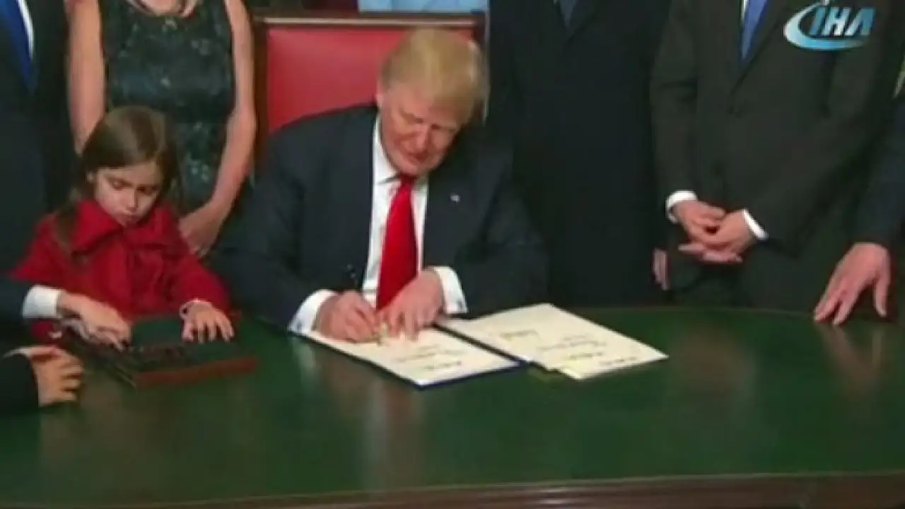 Kasım ayında yapılan seçimle ABD’nin 45’inci başkanı seçilen Donald Trump, bugün gerçekleştirilen törenle yemin etti. Yemin töreninde “İlk önce ABD” ifadelerine yer verdiği konuşmasının ardından görevi Barack Obama’dan resmen devraldı. Resmen göreve başlayan Donald Trump, kalemini ele alarak ilk emirlerini imzaladı.