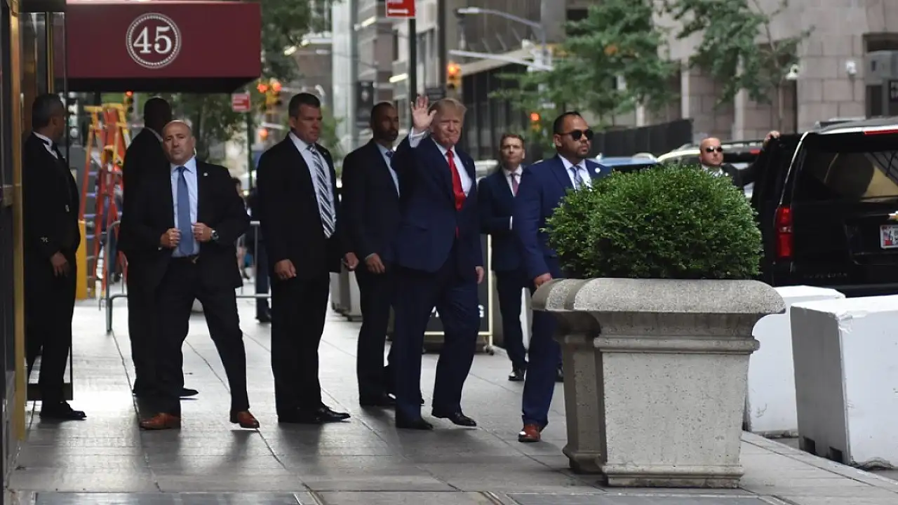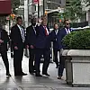 Sahibi olduğu Trump Tower'dan çıkarken kendisini bekleyen gazetecilere el sallayan eski Başkan, beraberindeki gizli servis ve kendi özel korumalarından oluşan geniş güvenlik ekibi ile Başsavcılığa hareket etti.