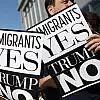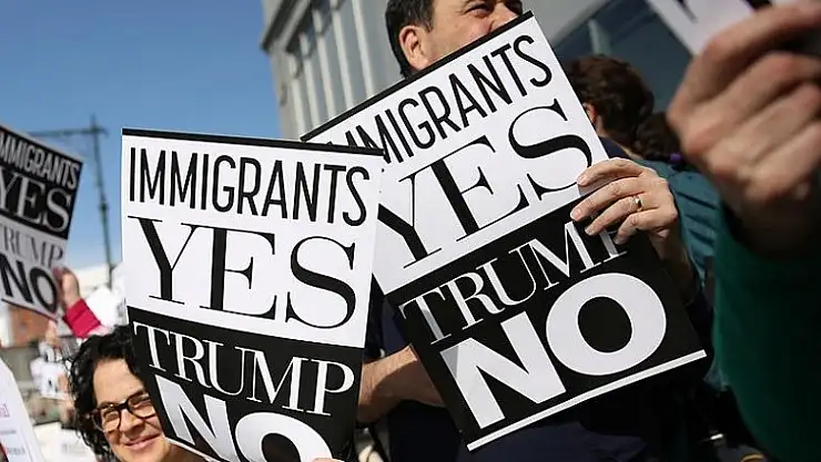 Sıkı güvenlik önlemlerinin alındığı Manhattan'da toplanan yüzlerce gösterici Trump'a tepki gösterdi. "Göçmenlere evet, Trump'a hayır", "Benim başkanım değil" yazılı dövizler taşıyan protestoculara yoldan geçen bazı araçların sürücülerin de korna çalarak destek verdi.