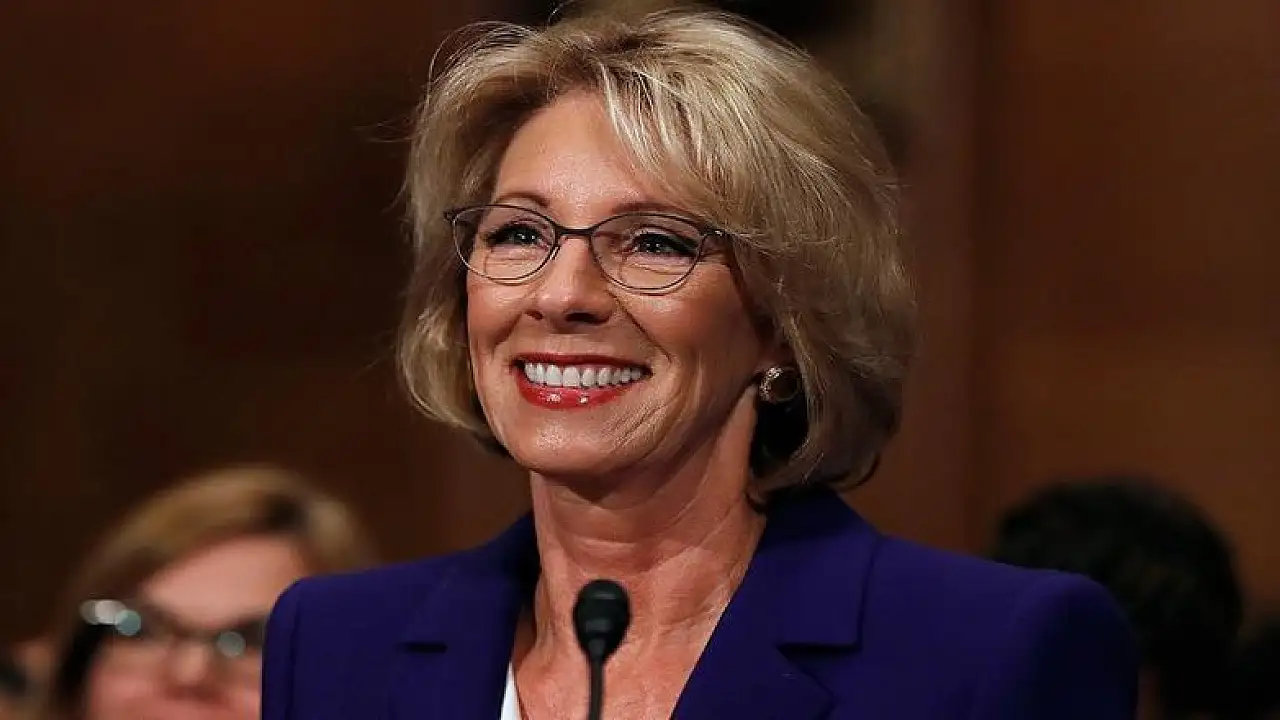 Daha önce Cumhuriyetçi Partinin Michigan başkanlığını yapan DeVos, devlet okullarına aktarılan fonların velilere verilmesi, bu yolla öğrencilerin özel ve dini okullara yönlendirilmesi gibi görüşleri savunuyor.