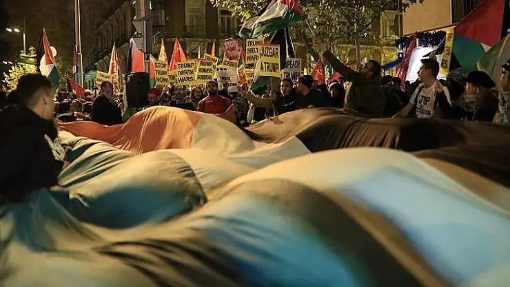 Trump'ın kararı, ABD'nin Madrid Büyükelçiliği önüne protesto edildi
