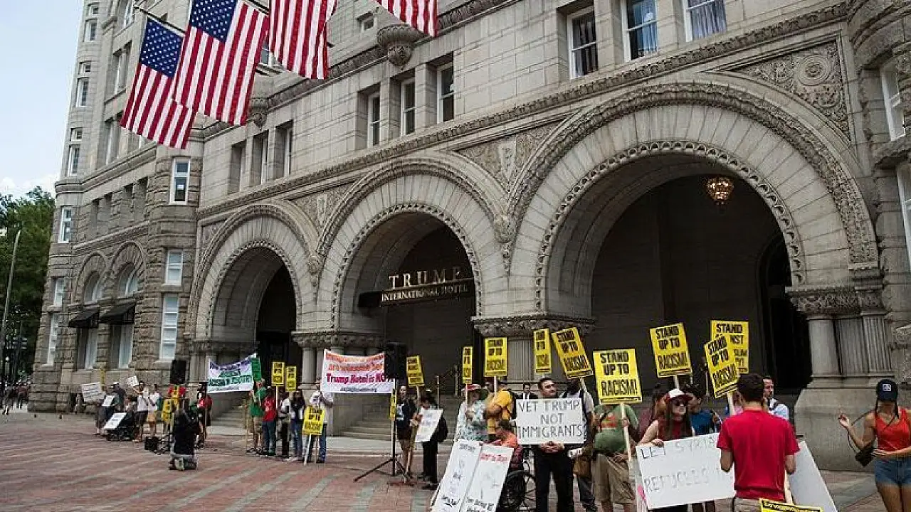 ABD başkan adayı Donald Trump'ın Washington'ın merkezindeki lüks oteliprotestocular eşliğinde müşterilerine kapılarını açtı.