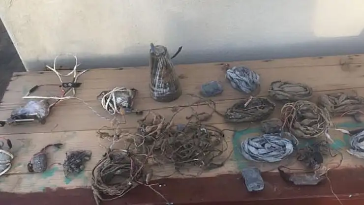 Toprak altına gizlenmiş 12 adet tespih tipi patlayıcı düzenek, 3 adet çekme tipi patlayıcı düzenek, 1 adet el yapımı patlayıcı, 1 adet uzaktan kumanda devresi kullanıcı talimatı ile 1 adet eletronik devrelerle ilgili ders kitabı ele geçirildiğini bildirdi