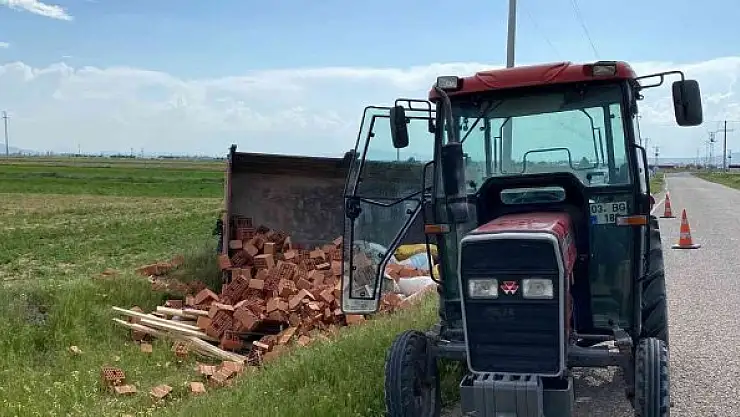 Tuğla yüklü traktörün bağlantı demiri koptu