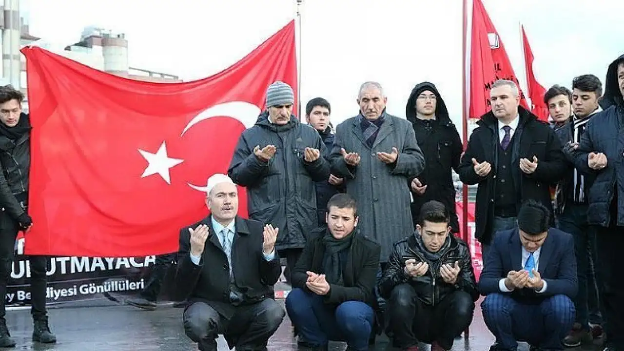 Sabah namazını kıldıktan sonra yürüyerek Şehitler Tepesine giden gruptakiler, Kur'an-ı Kerim okudu, şehitler ve İslam dünyası için dua etti.