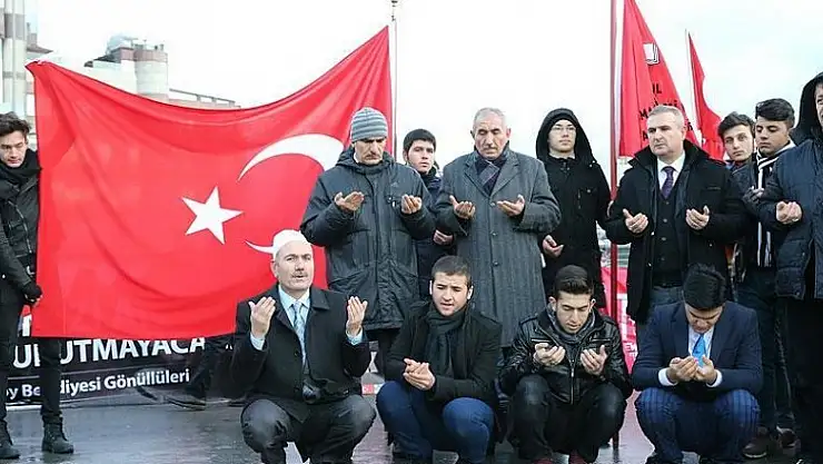 Her zaman meydanlarda olacaklarını belirten Şahinkaya, "Suriye'de patlayan bomba da Beşiktaş’ta patlayan bomba da veya Filistin'de olsun, Irak'ta olsun patlayan tüm bombalar aynı şer odaklarından geliyordur. Bizler de imanlı gençler olarak bunlara bir 'dur' demek için, sesimizi yükseltmek için bugün buradaydık, yarın başka yerlerde olacağız." diye konuştu.