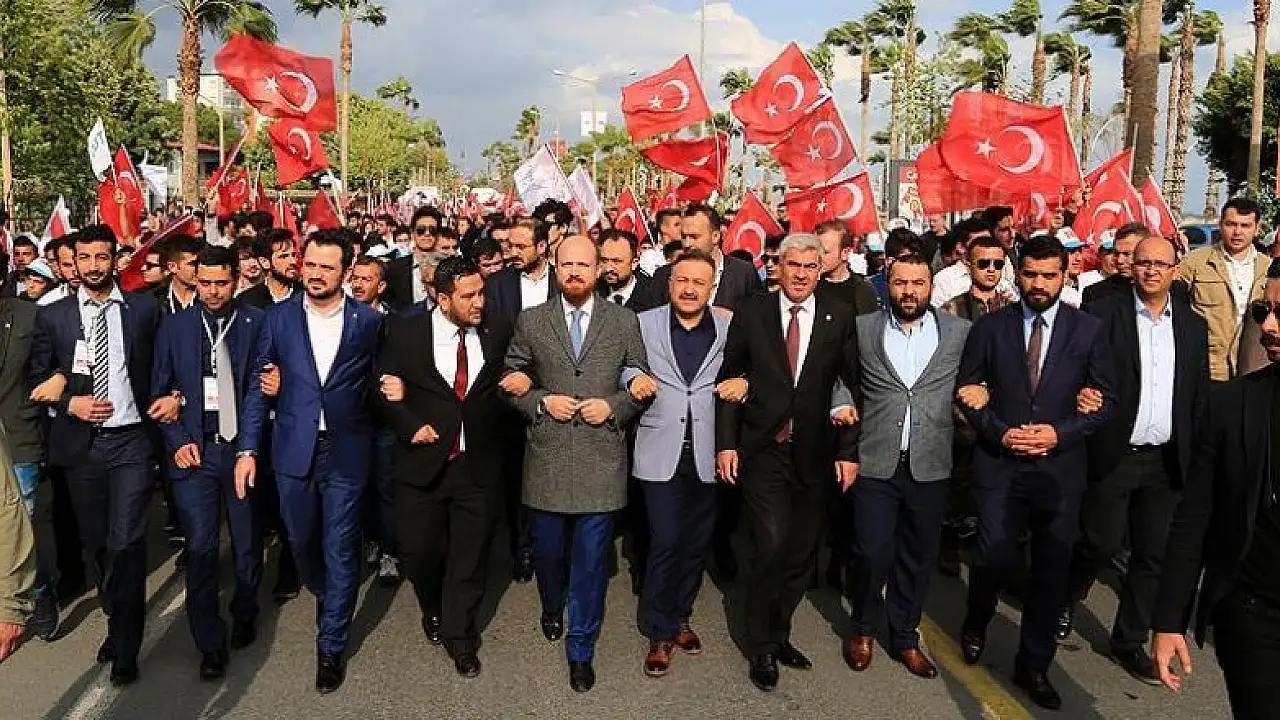 TÜGVA Yüksek İstişare Kurulu Üyesi Bilal Erdoğan, AK Parti Mersin Milletvekili Hacı Özkan, vakıf üyeleri ve vatandaşlar ile Gazi Mustafa Kemal Bulvarı'ndaki "Türkiye için evet" yürüyüşüne katıldı.