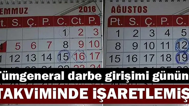 Tümgeneral darbe girişimi gününü takviminde işaretlemiş