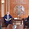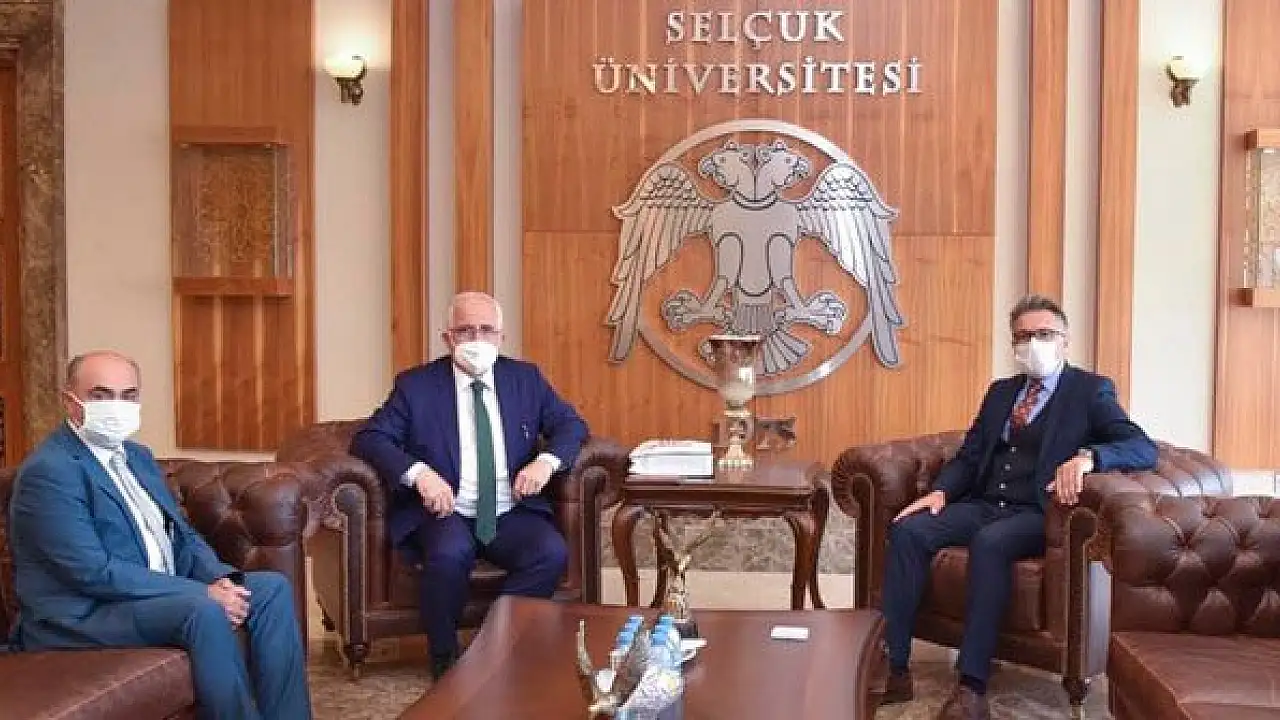 Bilge Türk Eğitim ve Kültür Vakfı Başkanı, Merkez Valisi Güngör Azim Tuna ile Necmettin Erbakan Üniversitesi Öğretim Üyesi Prof. Dr. Önder Kutlu, Selçuk Üniversitesi Rektörü Prof. Dr. Metin Aksoy’u makamında ziyaret etti. Ziyarette, Aksoy üniversitenin faaliyetleri hakkında bilgi verdi. Ziyaretten duyduğu memnuniyeti dile getiren Aksoy, Tuna ve Kutlu’ya çalışmalarında başarı diledi. Ziyaret, hatıra fotoğrafının çekilmesi ile son buldu.