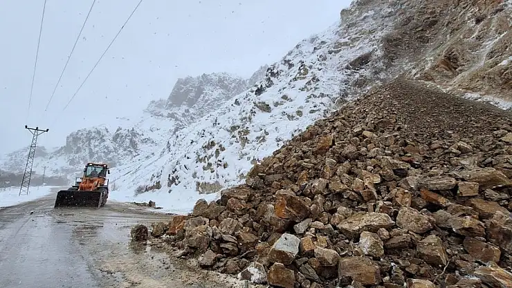 Tunceli'de 2 gündür etkili olan kar yağışının ardından kara yolunda heyelan meydana geldi. Tunceli-Ovacık kara yoluna devasa kaya parçaları düştü.