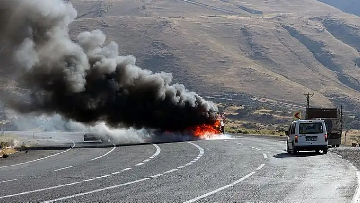 Tunceli'de PKK'lı teröristler yol kesip araç yaktı