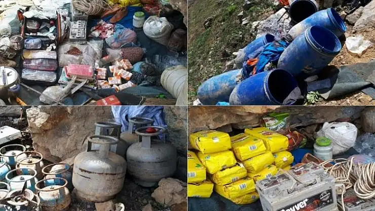İmha edilen sığınak ve mağaralarda yapılan aramalarda, 3 el yapımı patlayıcı (EYP) düzeneği, el bombası, telsiz, dürbün, terörist kıyafeti, 6 akü, 11 pil bloku, 8 uyku tulumu, el feneri, 15 çift ayakkabı, 10 adet branda, ocak, 10 küçük tüp, çakmak gazı, 30 metre naylon, 20 kilogram amonyum nitrat, 4 büyük tüp, 100 metre elektrik kablosu, tansiyon aleti, masaj aleti, 30 ampul, televizyon, 150 kilogram şeker, 50 kilogram salça, 10 kilogram pirinç, 50 kilogram peynir, 500 metre su hortumu, 40 kilogram motor yağı, 40 testere, 10 kilogram mercimek, 45 kilogram tuz, lehim makinesi, çok miktarda mutfak malzemesi ve yaşam malzemesi ele geçirildi.