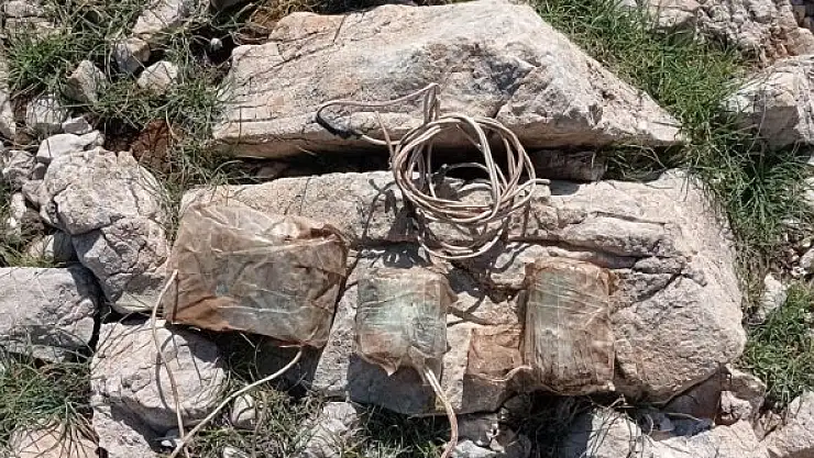 Arazide özel eğitimli köpekler ile arama yapan güvenlik güçleri, teröristlerce kayalık alana tuzaklanmış el yapımı patlayıcı düzeneği tespit etti.