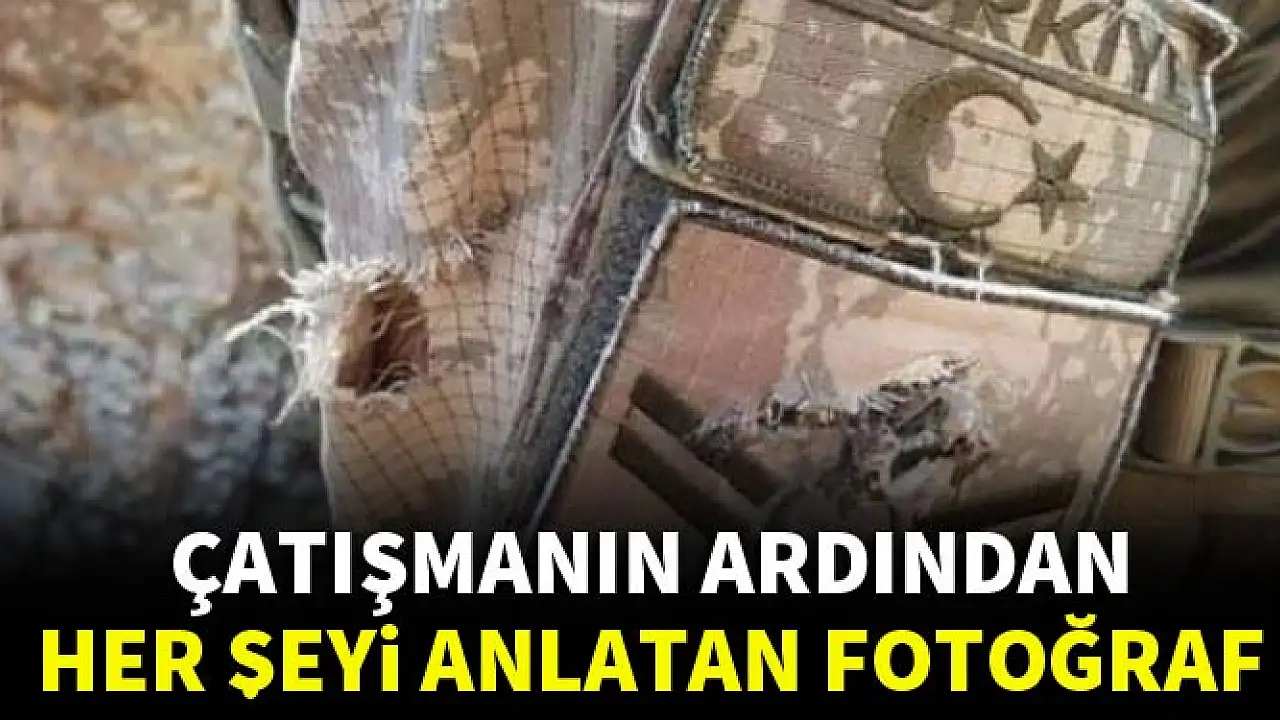 Çatışmaya giren JÖH timinden 1 uzman çavuşun silahı ve kamuflajını parçaladığı kurşun delikleri çatışmanın şiddetini gözler önüne serdi.