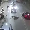 Amasya'da Ferhat Tüneli'nde motosiklet otomobile arkadan çarptı. Motosikletten düşen baba ve oğlunun yaralandığı kaza anı güvenlik kamerasına yansıdı.