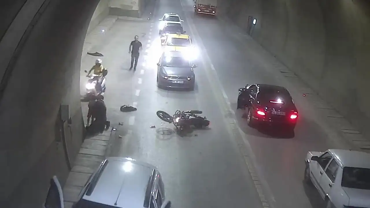 Edinilen bilgiye göre, Mustafa B. yönetimindeki 05 ABD 107 plakalı motosiklet, Ferhat Tüneli'nde Özhan B. yönetimindeki 05 AAP 736 plakalı otomobile arkadan çarptı. Çarpmanın etkisiyle motosiklet sürücüsü Mustafa B. ve oğlu Yusuf B. yola savruldu. Yaralanan baba ve oğlunun yardımına çaptıkları otomobilin sürücüsü ve çevredekiler yetişti. Baba ve oğlu, hastaneye kaldırılarak tedavi altına alındı. Kaza anı tünelin güvenlik kamerasına yansıdı.