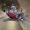 ÜSKÜDAR Vecdi Diker Tüneli'nde önündeki taksiye çarpan otomobil, takla atarak, ters döndü.