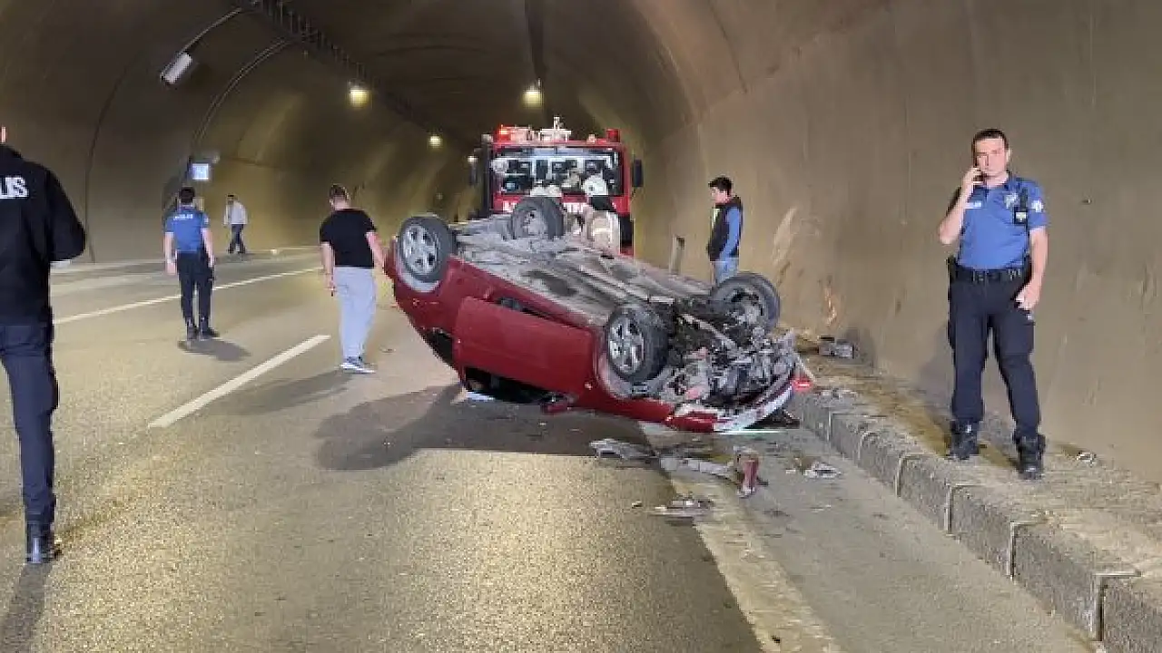 Tünelde taksiye çarpan otomobil takla attı