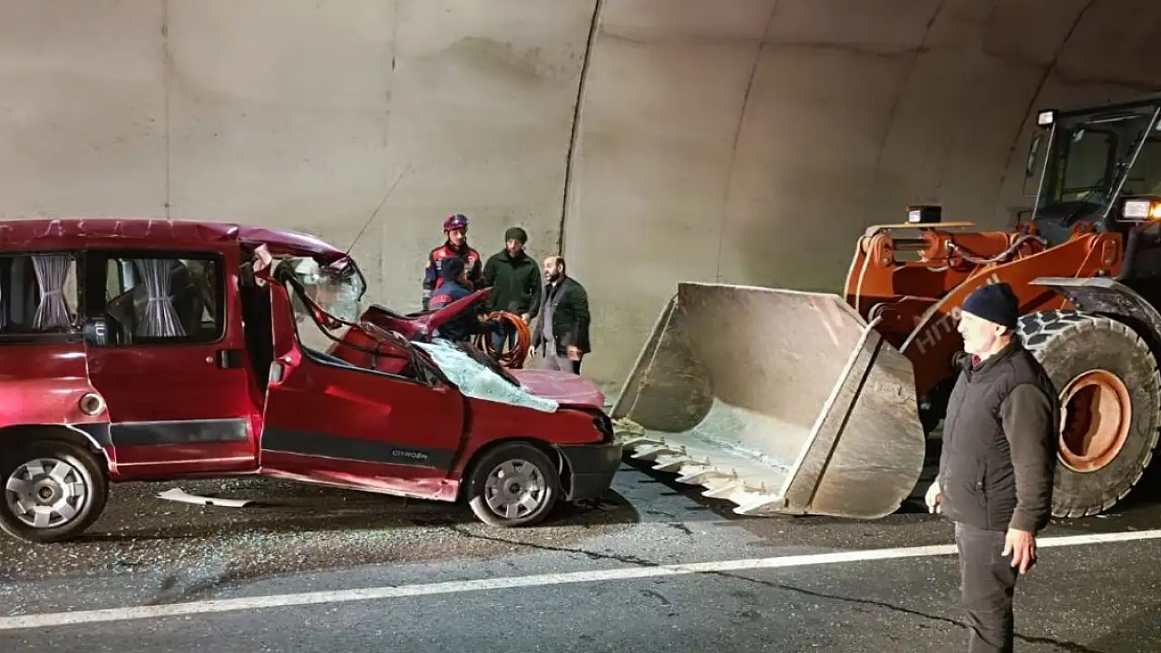 Tünele tersten giren hafif ticari araç, iş makinesine çarptı: 1 ölü
