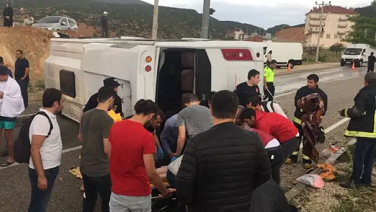 ANTALYA'nın Korkuteli ilçesinde Rumen turistlerin taşındığı midibüsün devrildiği kazada 1'i ağır 22 kişi yaralandı.