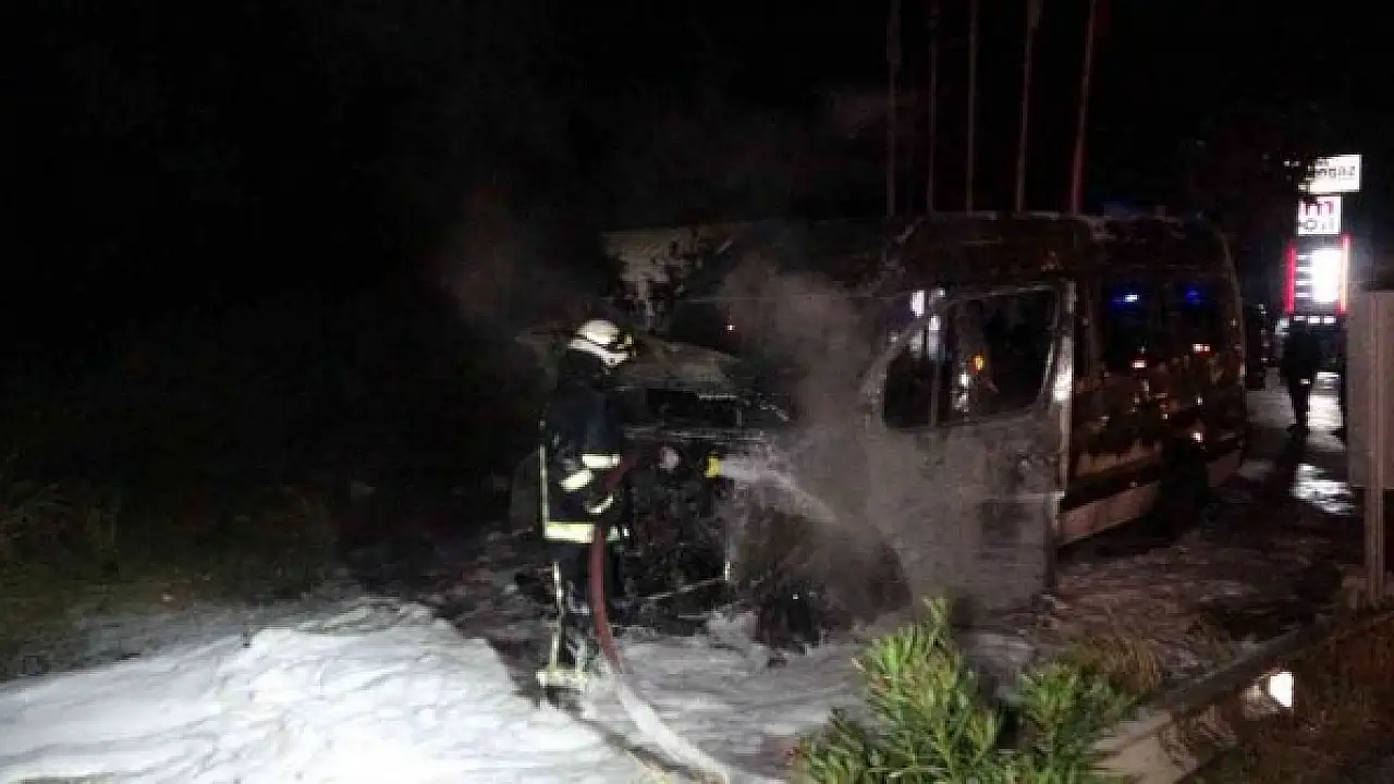 Tur minibüsü alev alev yandı