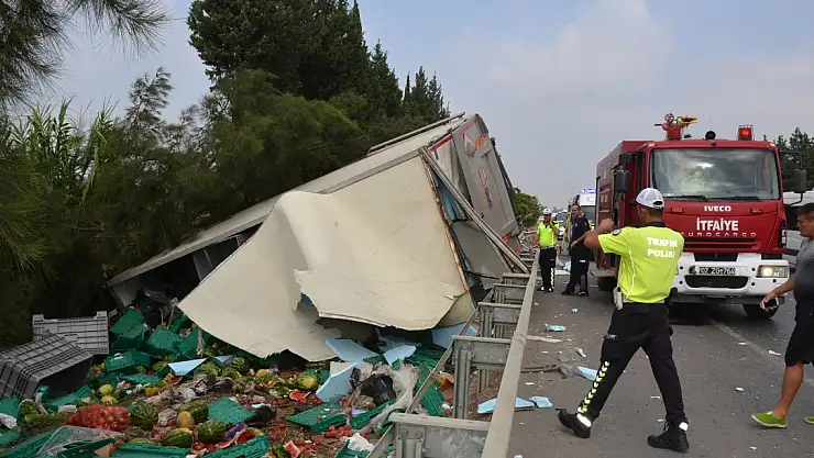 Kaza, saat 08.30 sıralarında Serik- Manavgat D-400 kara yolu Çakış Kavşağı mevkisinde meydana geldi. Serik'ten Manavgat yönüne giden Muharrem Aydın idaresindeki 07 YAV 44 plakalı kamyon ile aynı istikametteki İsmail Erdem'in kullandığı 07 EYS 07 plakalı tur otobüsü çarpıştı. Savrulan karpuz yüklü kamyon yolun sağındaki bariyerlere çarparak şarampole yuvarlanırken, tur otobüsü ise 300 metre ilerde durabildi. Kazada, araçta sıkışan kamyonun şoförü Muharrem Aydın, yaşamını yitirdi. Aydın'ın yanındaki oğlu Ramazan Aydın ile tur otobüsündeki yabancı uyruklu 5 kişi ve sürücü Erdem, yaralandı.