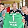 Ziyaretten dolayı çok mutlu olduğunu belirten Şeren, Özbek ve Ulusoy'a minik bir top hediye etti.