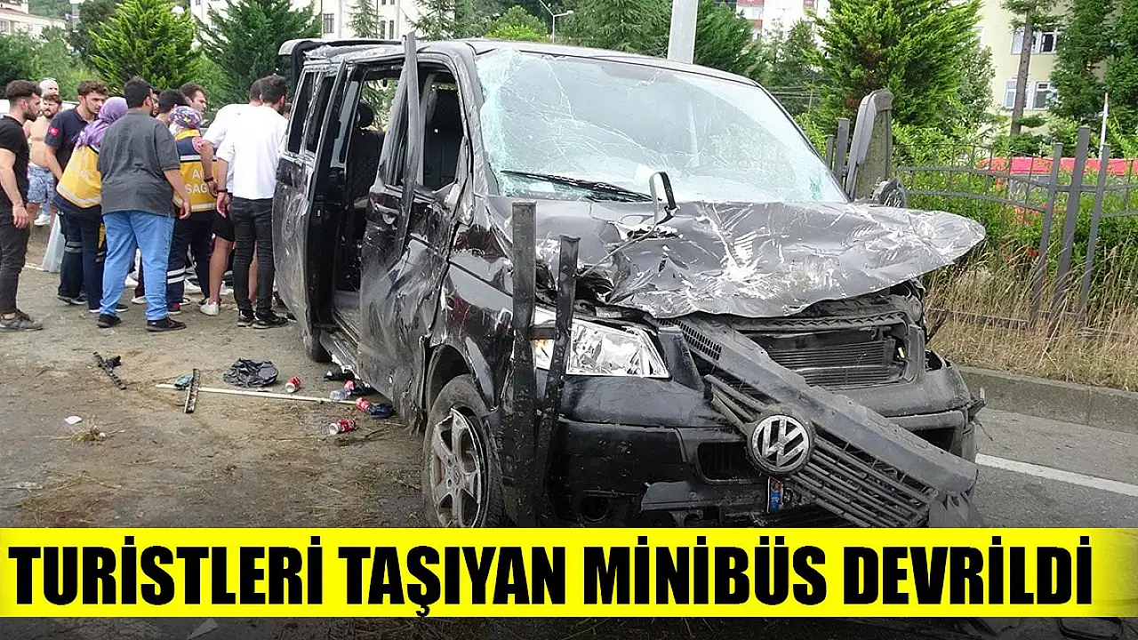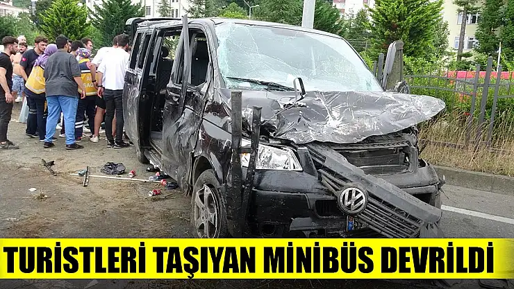 Trabzon'un Sürmene ilçesinde turistleri taşıyan minibüsün metrelerce sürüklenip, yan yattığı kazada 3'ü ağır 6 kişi yaralandı.
