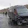 Turistleri taşıyan minibüs, kayan otomobile çarptı, yaralılar var