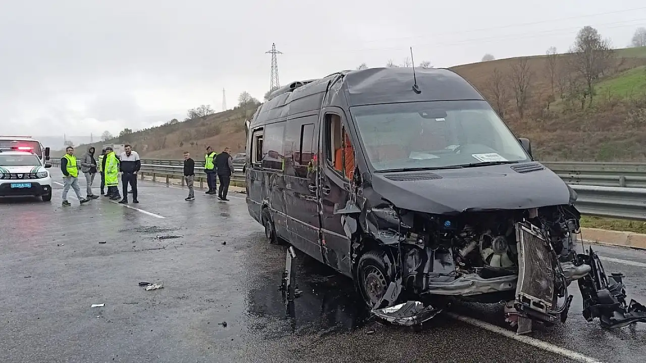 KOCAELİ'de turistleri taşıyan minibüs, yağmur nedeniyle kayganlaşan yolda kontrolden çıkan otomobile çarptı kazada 5 kişi yaralandı.
