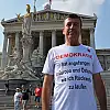 Mersin’de acil tıp doktoru olarak görev yapan 48 yaşındaki Küçük, üzerinde Almanca ve İngilizce olarak "Avusturya ve Avrupa’da demokrasi, benim gibi ters koşmaya başladı" yazan tişörtle Avusturya Meclisi önünde eylem yaptı.