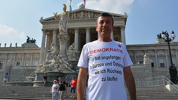 Mersin'den Avusturya'nın başkenti Viyana'ya gelen doktor Ali Küçük, Avusturya ve Avrupa'nın 15 Temmuz darbe girişimi sonrası tutumunu protesto etti.