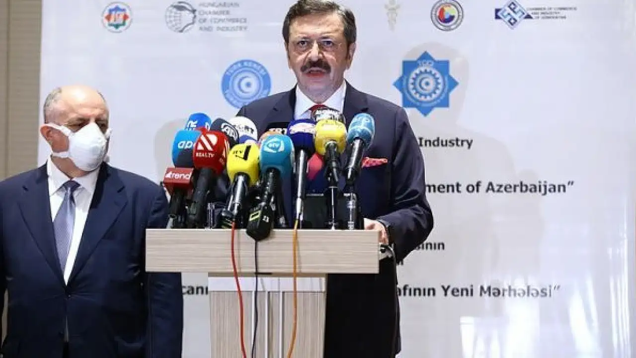 Türk Ticaret ve Sanayi Odası Başkanı Rifat Hisarcıklıoğlu, basın mensuplarına yaptığı açıklamada, Ermenistan'ın saldırılarına karşı Azerbaycan'a destek vermek için Bakü'de bulunduklarını söyledi.