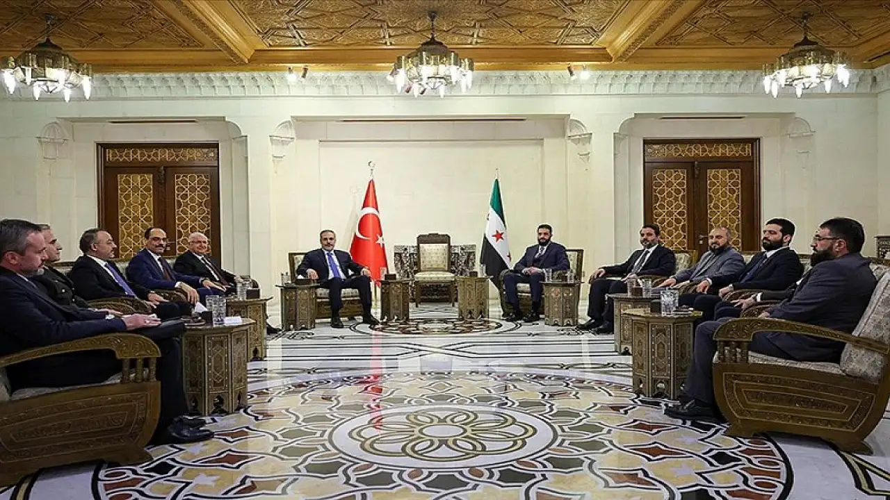 Dışişleri Bakanı Hakan Fidan, Milli Savunma Bakanı Yaşar Güler ve MİT Başkanı İbrahim Kalın, Suriye Cumhurbaşkanı Ahmed Şara tarafından başkent Şam'da kabul edildi.
