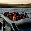 Yunanistan'ın Midilli Adası'na geçmeye çalışan yabancı uyruklular, lastik botla Çıplak Ada sahilinden Ege Denizi'ne açıldı.