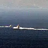 Kardak kayalıkları arkasından hızla gelen bir Yunan sahil güvenlik botunun ihlal ettiği Türk karasularına kadar geldiği görüldü.eek
