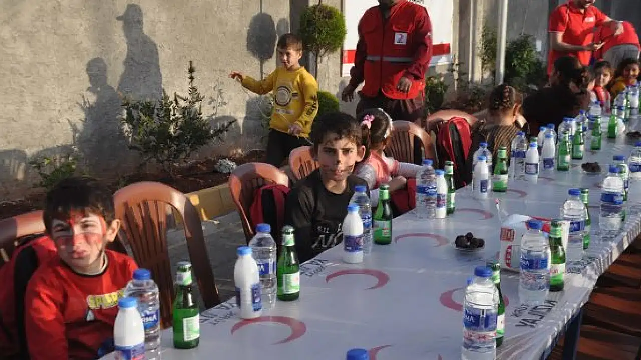 TÜRK Kızılay, Dünya Yetimler Günü'nde Suriyeli yetim çocuklarla ve çadırda yaşayan ailelerle bir araya geldi. Savaş mağduru yetim çocuklara çeşitli hediyeler veren Kızılay, çadırda yaşayan ailelere de gıda yardımında bulunup iftar yemeği düzenledi.