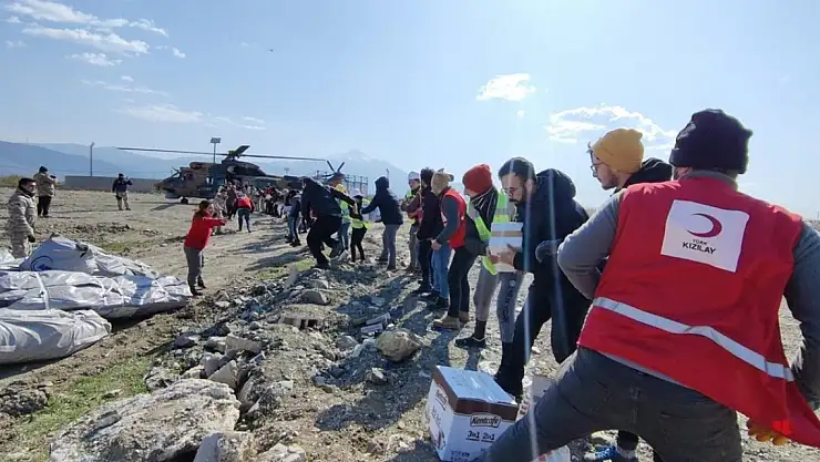 Türk Kızılay gönülleri, Kahramanmaraş merkezli ve 10 ili etkileyen depremlerin ardından afetzedelere beslenme, barınma, giyim ve hijyen malzemeleri ulaştırmaya çalışıyor.Gönüllüler, depremden etkilenen kırsal kesimlere beslenme, barınma, giyim ve hijyen malzemelerini kara yolunun yanı sıra Türk Silahlı Kuvvetlerinin tahsis ettiği helikopterlerle ulaştırıyor.