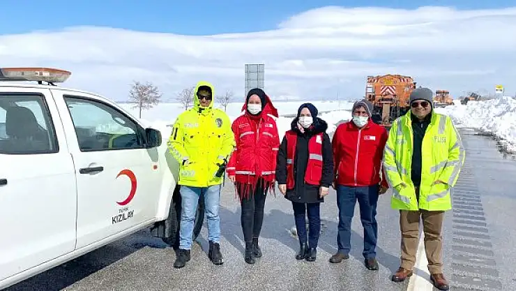 Yurt genelinde ve Konya Merkez ve ilçelerinde etkisini gösteren soğuk hava koşulları ile kar yağışıyla sonucu yolda mahsur kalan vatandaşları ve sürücüleri Türk Kızılay Konya Şubesi ekipleri yalnız bırakmadı. Konya çevre yollarında mahsur kalan vatandaş ve sürücülere sıcak çorba, cay ve kumanya ikramlarında bulunarak her zaman olduğu gibi gönülleri taht kurdu.