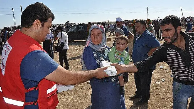 Türk Kızılayı'ndan sığınmacılara su ve gıda yardımı