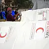 Günlük su ve gıda yardımını rutin olarak devam ettiren Kızılay, daha önce kurduğu 5 adet 56 metrekarelik genel maksatlı çadırın ardından depremzedelere 2 bin adet branda dağıttı.