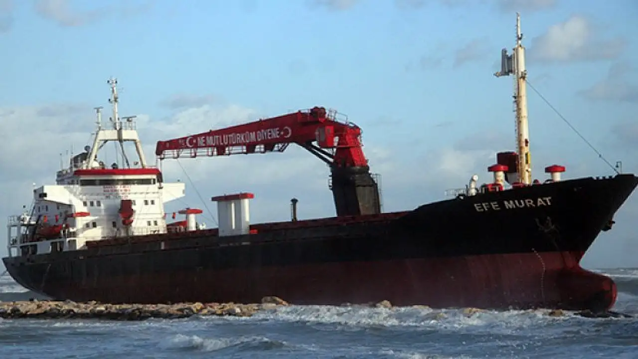İtalya'nın Ortana Limanı'nda yola çıkan Efe Murat isimli Türk kuru yük gemisi Bari kenti yakınlarında olumsuz hava koşulları sebebi ile karaya oturdu.