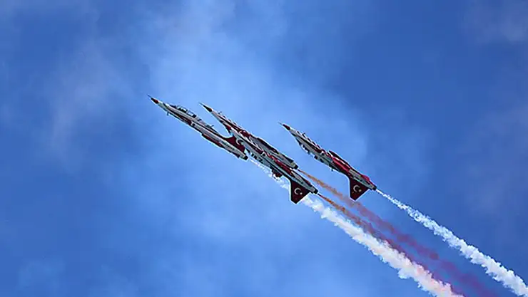 Yaklaşık 30 dakika süren Türk Yıldızları'nın gösterisine yoğun ilgi gösteren vatandaşlar, cep telefonları ve kameralarıyla etkinliği kaydetti.