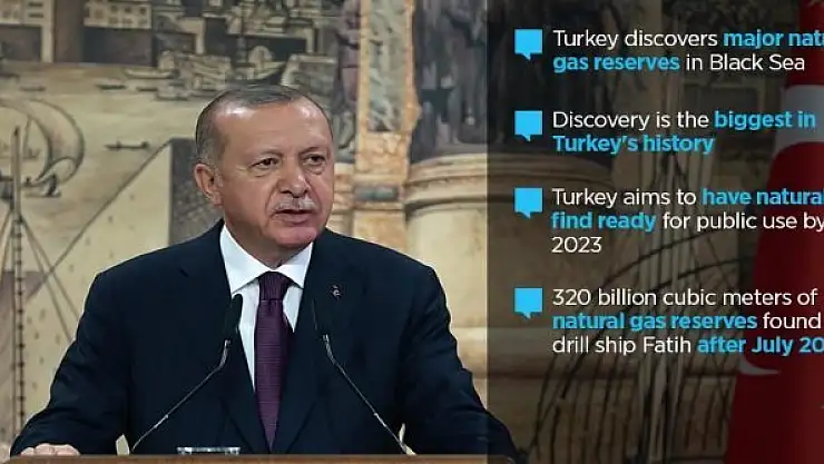 "Turkey has made the biggest natural gas discovery in the Black Sea," Recep Tayyip Erdogan said at the historic Dolmabahce Palace in Istanbul.