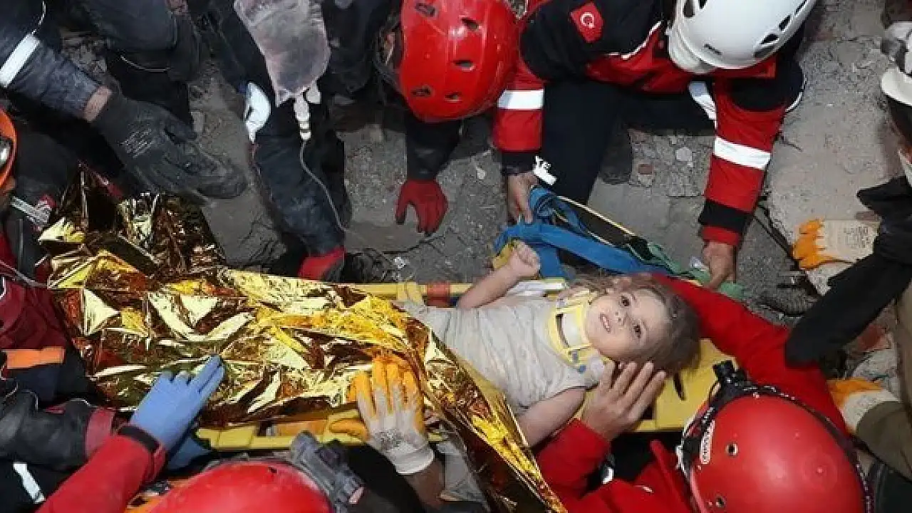 The young survivor was seen to be conscious and looking at her surroundings when being transported to Ege University Hospital.