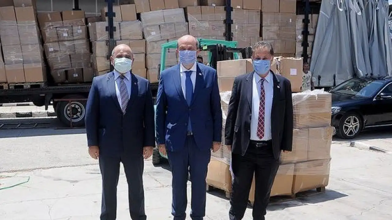 Speaking during the ceremony, TRNC Prime Minister Ersin Tatar thanked Turkey for the healthcare materials including 20,000 test kits, 10 ventilators and 2 PCR machines, among others.