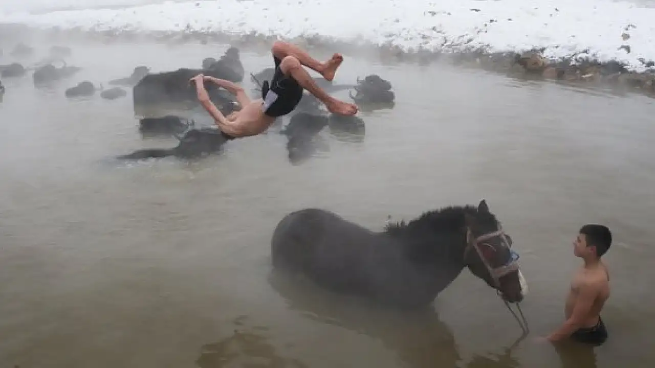 - Turkish farmers bathe their buffalo, horses in hot spring waters during winter