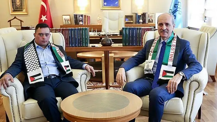 Turkey's Culture and Tourism Minister Numan Kurtulmus received on Thursday a Palestinian man with Down syndrome along with his family.