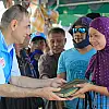 Gıda yardımının yanı sıra vakfın "Hediyem Kur'an olsun" projesi kapsamında Filipinli Müslümanlara Kur'an-ı Kerim hediye edilirken, bölge halkının duygulu anlar yaşadığı gözleniyor.